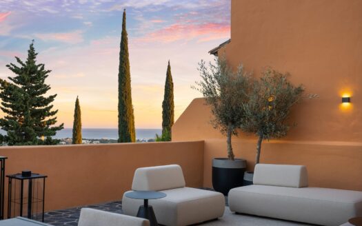 Un impresionante apartamento en La Cerquilla con vistas panorámicas al mar y a la montaña.