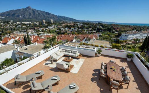 Un impresionante apartamento en La Cerquilla con vistas panorámicas al mar y a la montaña. El barrio es una exclusi