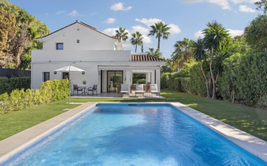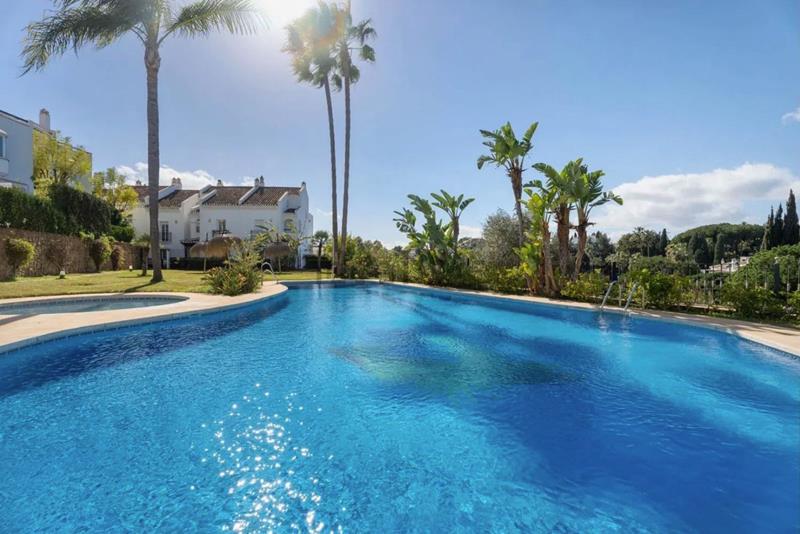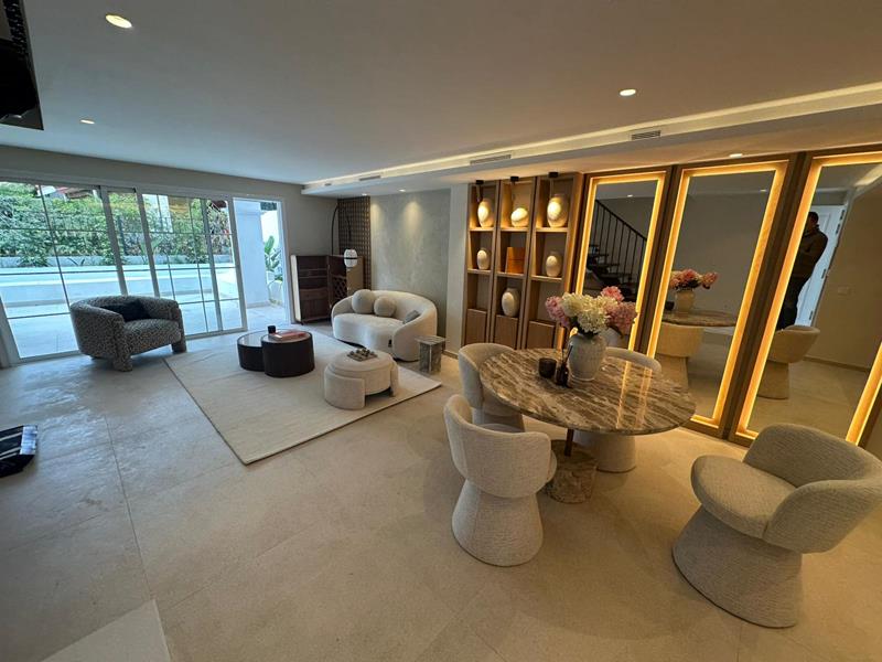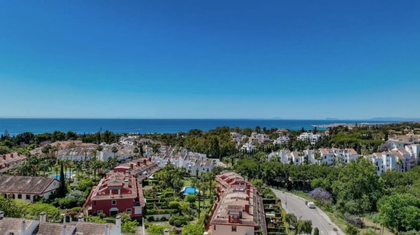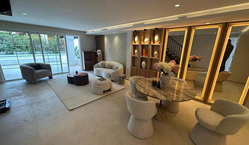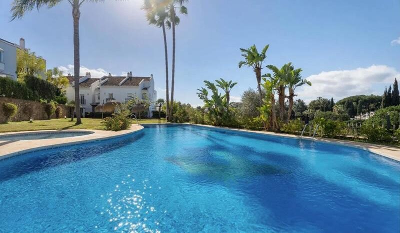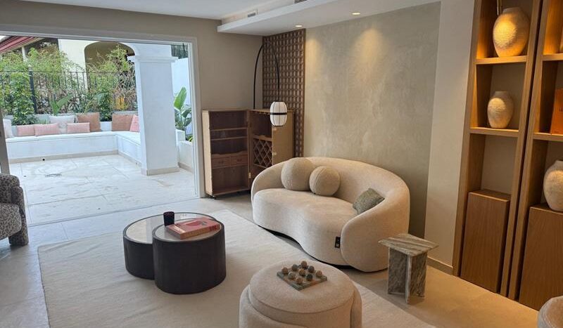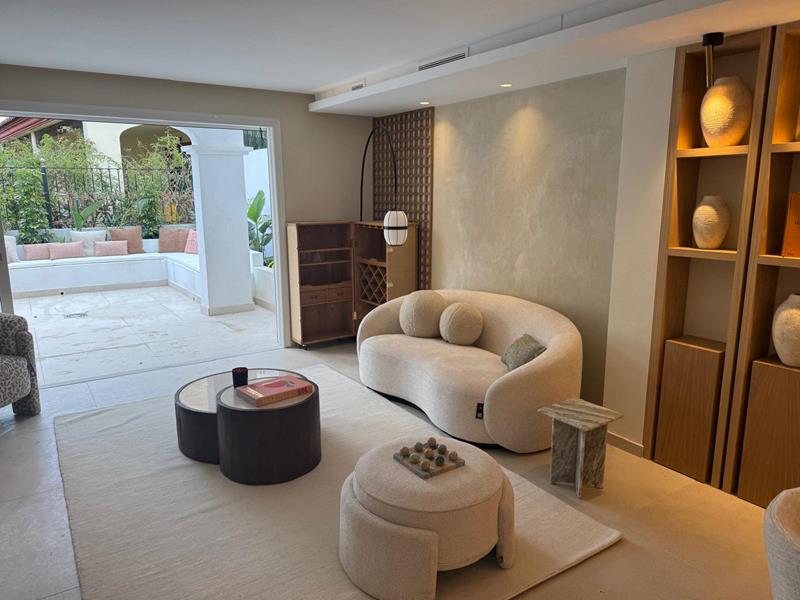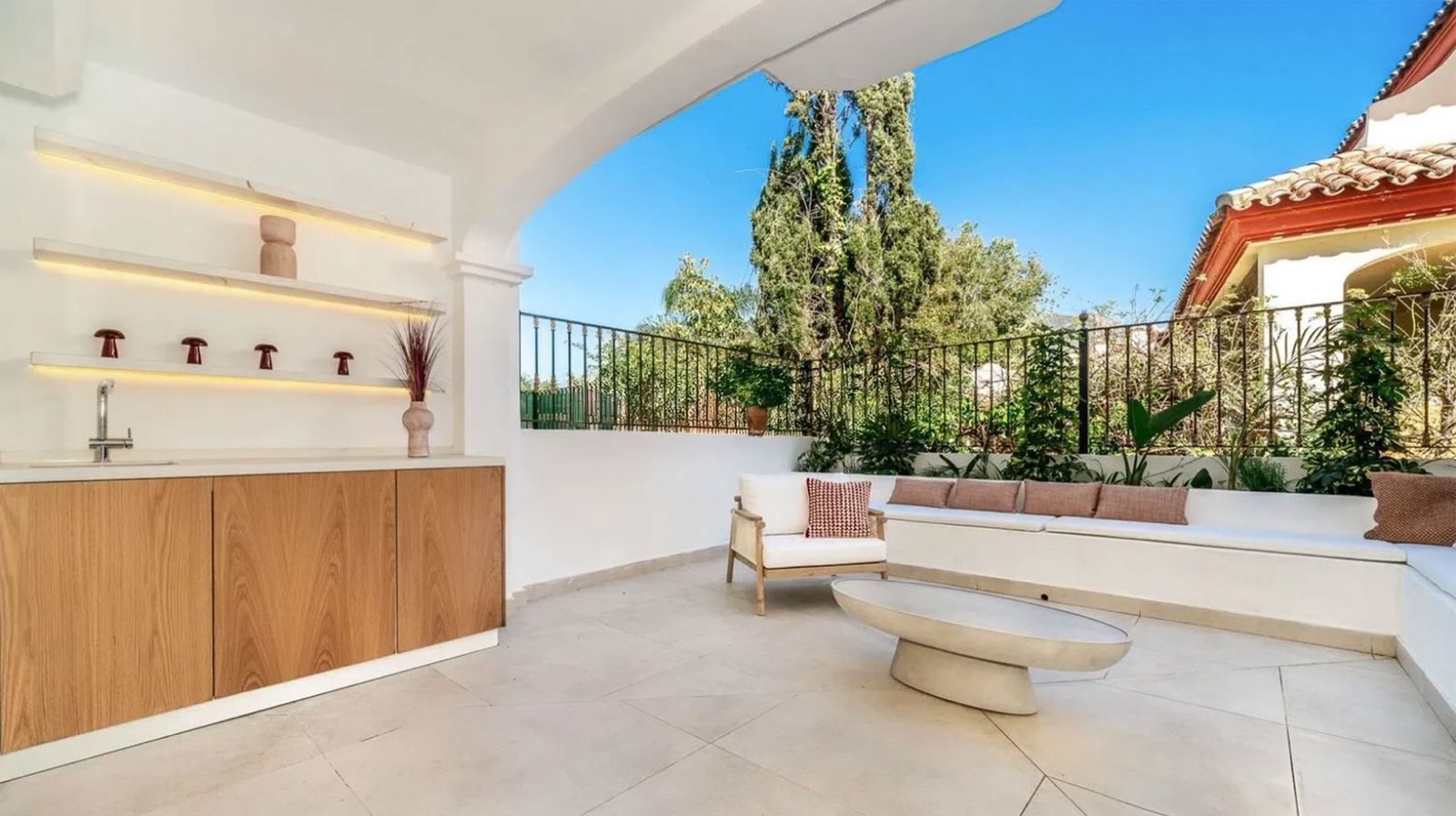 Ubicada en la prestigiosa comunidad Arco Iris, en la Milla de Oro de Marbella, esta elegante casa adosada, recientemente renovada, ofrece un excelente equilibrio entre comodidad, diseño y una ubicación privilegiada. A pocos pasos de la playa, Puente Romano y el Foro, la propiedad goza de un cómodo acceso a los mejores servicios y se beneficia de un entorno seguro y privado.