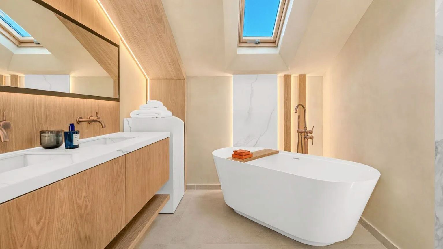 La primera planta consta de dos espaciosas suites, mientras que la planta superior alberga una impresionante suite principal con techos abovedados, baño en suite y una terraza privada con vistas a La Concha.
