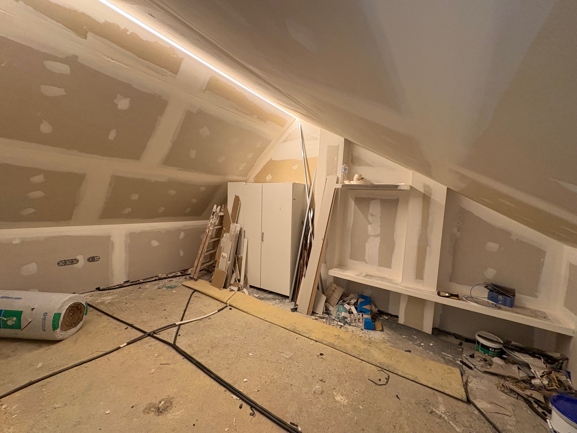 La planta superior, de aproximadamente 35 m², está actualmente sin terminar y ofrece un excelente potencial para convertirla en un dormitorio adicional, un despacho o un espacio de ocio, según las necesidades personales.