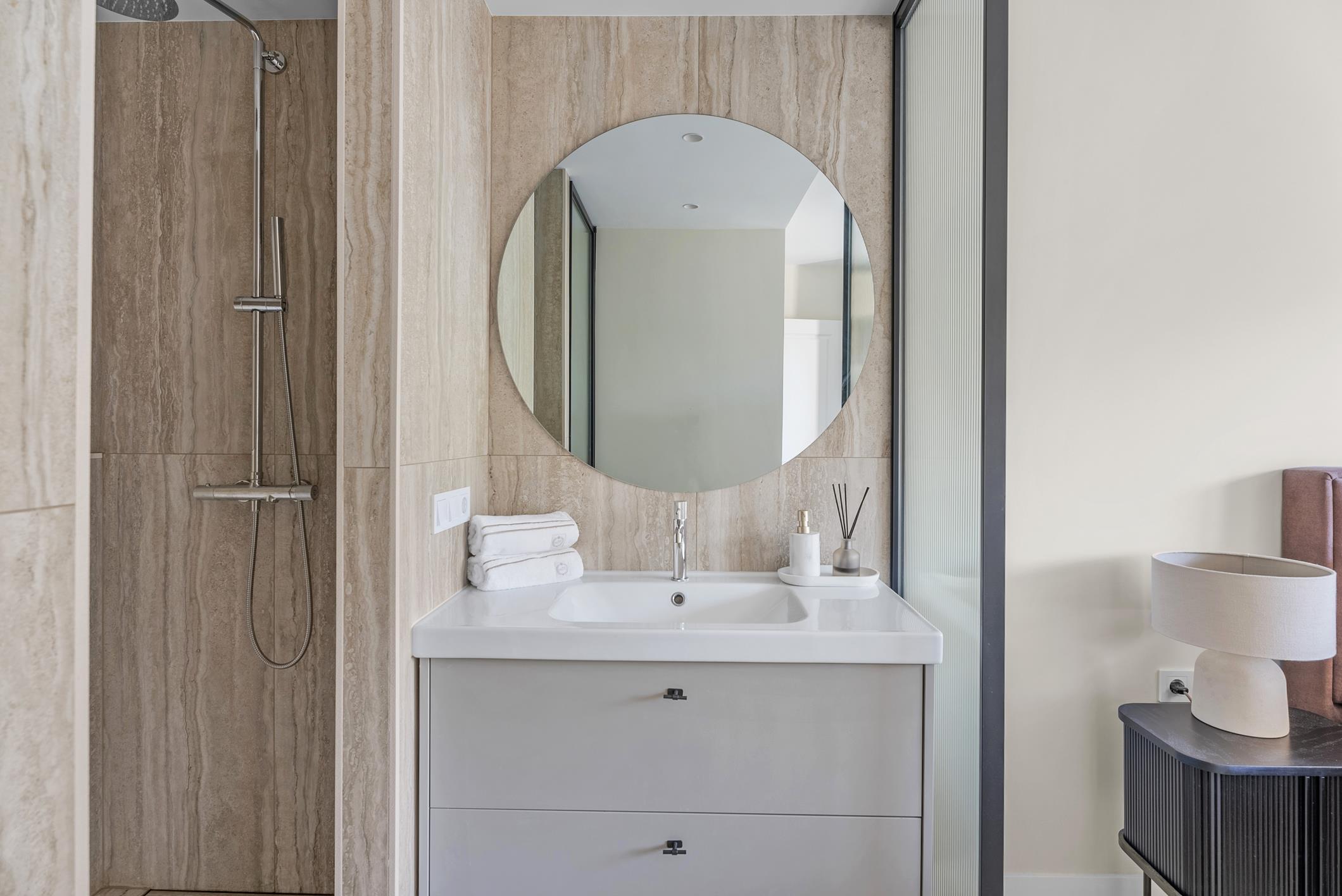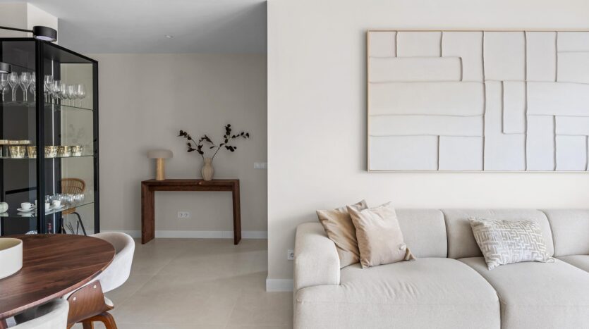 Recientemente reformado por completo, el apartamento cuenta con tres dormitorios, dos baños y un salón-comedor diáfano con cocina moderna. El espacio se abre a una terraza privada, ideal para disfrutar del sol mediterráneo durante todo el año.