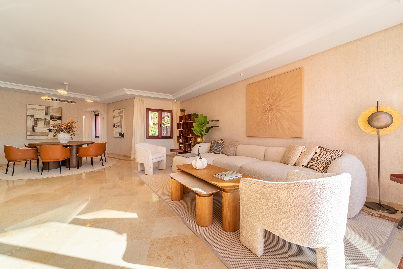 Distribuido en dos niveles, el inmueble ofrece 186 m² de espacio interior y 115 m² de terrazas. La planta principal cuenta con un elegante vestíbulo que da paso a un amplio salón-comedor-cocina de planta abierta. La cocina, totalmente reformada y de estilo americano, está equipada con electrodomésticos de alta gama y una isla central, que combina un estilo contemporáneo con la funcionalidad del día a día. El salón se abre directamente a una amplia terraza, perfecta para cenar al aire libre y disfrutar de veladas relajadas con vistas ininterrumpidas al mar.
