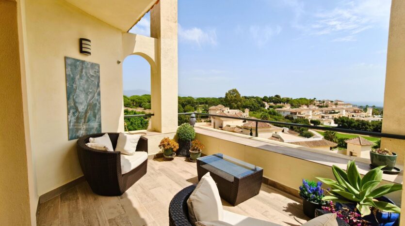 Este elegante ático, totalmente renovado y decorado con un estilo moderno, ofrece un espacio de vida único en el exclusivo entorno de San Roque Club. Con impresionantes vistas al mar y rodeado de paz y privacidad, es el hogar perfecto tanto para los amantes del golf como para quienes buscan confort y calidad de vida.