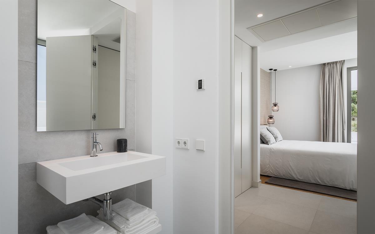 Distribuida en tres niveles, la villa combina una arquitectura minimalista con un confort de alta gama. La planta principal cuenta con un acogedor salón-comedor de concepto abierto, perfectamente integrado con una cocina alemana de diseño equipada con acabados de primera calidad. Las puertas correderas de suelo a techo se abren a amplias terrazas, con zonas tanto cubiertas como soleadas para relajarse y disfrutar de comidas al aire libre, con vistas al jardín privado y a la piscina.