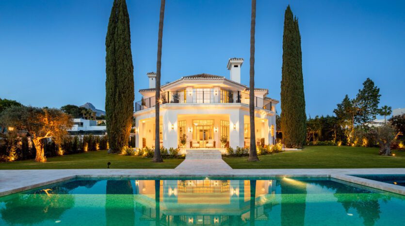 Bienvenido a Villa Karina, una magnífica villa de lujo de 5 dormitorios enclavada en el corazón de Nueva Andalucía, que ofrece la combinación perfecta de elegancia, confort y una ubicación privilegiada. Ubicada en una amplia parcela de 1.959 m² con una generosa superficie construida de 722 m², esta impresionante residencia captura la esencia de la sofisticada vida mediterránea. Desde su llegada, la impactante fachada blanca, los jardines impecablemente cuidados y la impresionante entrada para coches marcan la pauta de la excepcional calidad y diseño que se encuentra en toda la propiedad.