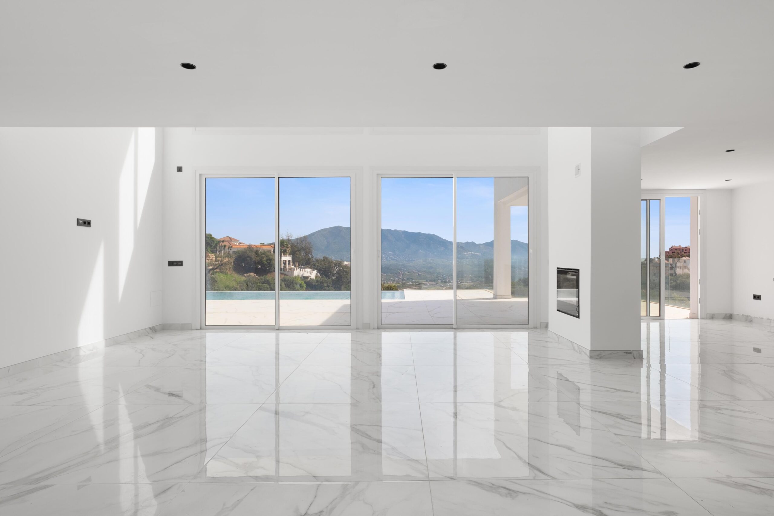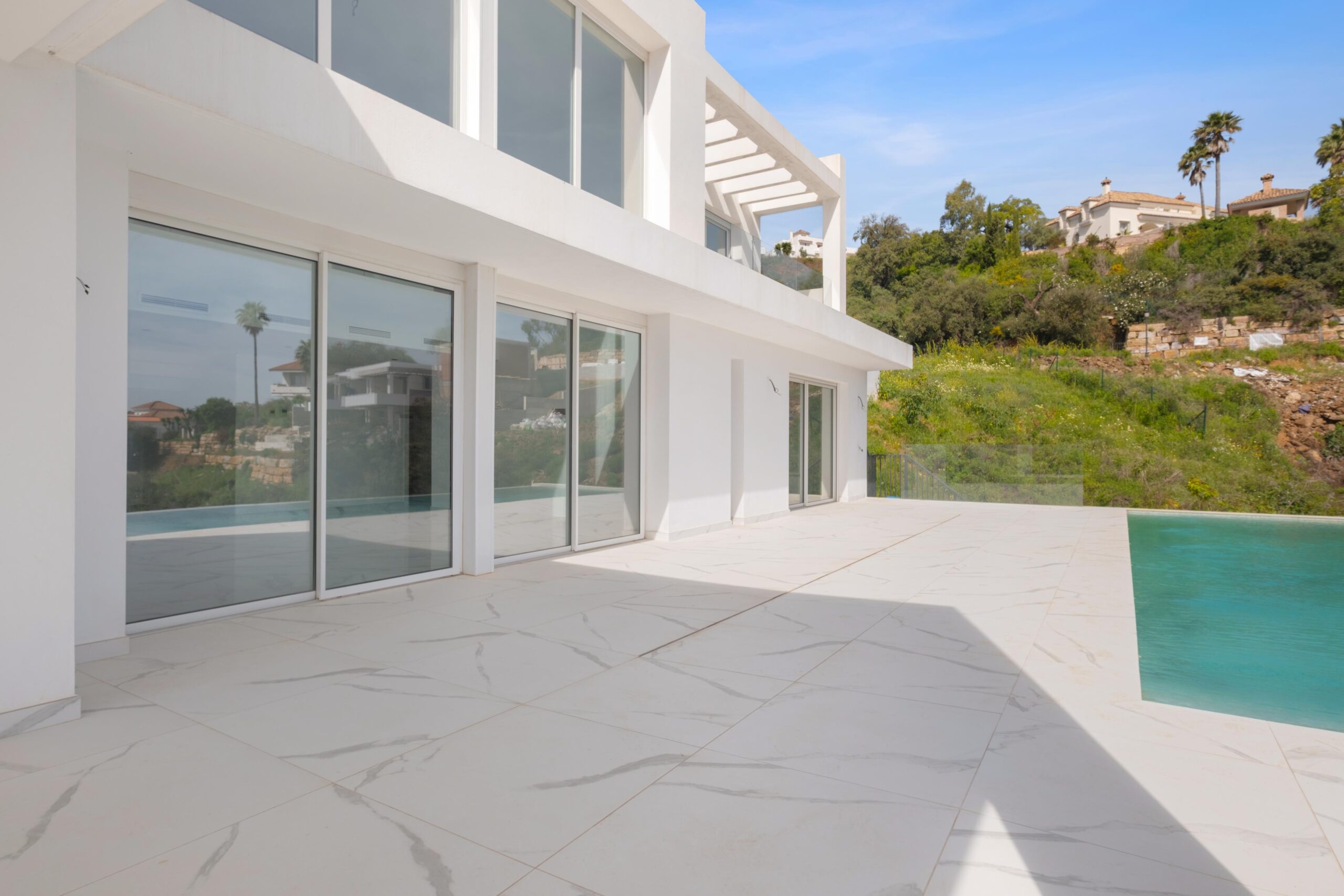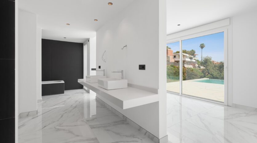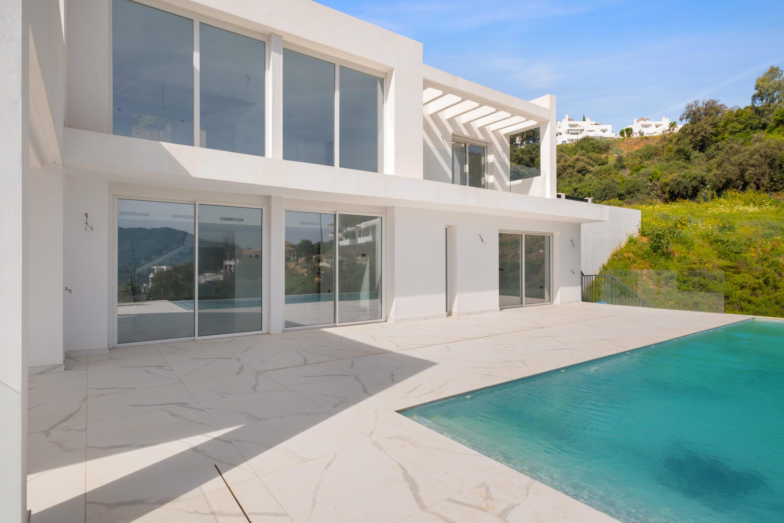 Esta villa contemporánea en La Mairena destaca por su posición elevada y sus vistas panorámicas garantizadas para siempre, ya que linda con zonas verdes. Ubicada en una parcela de 2389 m², la propiedad ofrece la ventaja exclusiva de que el terreno directamente enfrente no es edificable, lo que garantiza total privacidad y vistas al mar sin obstáculos. La residencia cuenta con 4 dormitorios, un espectacular salón de doble altura inundado de luz natural y una moderna cocina de planta abierta, con posibilidad de ampliar el espacio en el sótano. Con una impresionante piscina infinita y amplias terrazas diseñadas para disfrutar del sol durante todo el día, esta villa representa el refugio perfecto para quienes buscan un estilo de vida mediterráneo moderno y tranquilo. Lista para entrar a vivir de inmediato. Cuenta con licencia de primera ocupación.