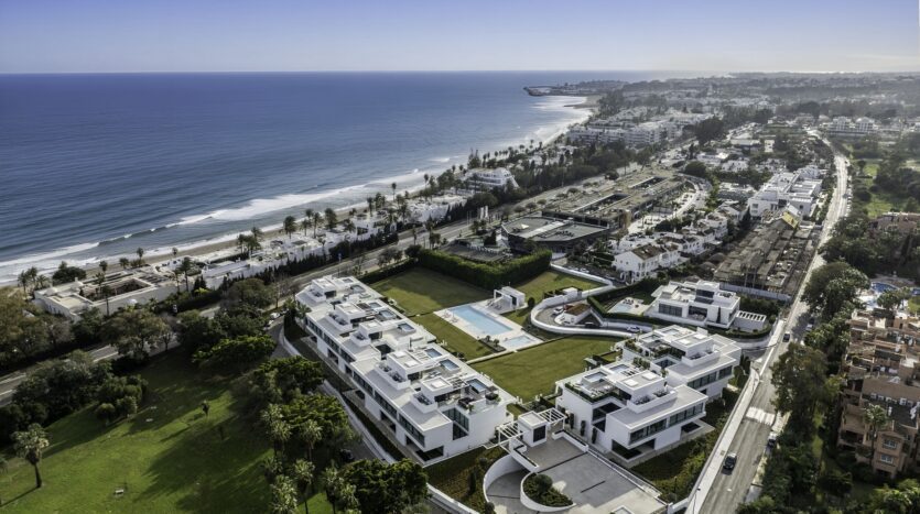 Por encima de todo, la terraza de la azotea se convierte en el espacio que define discretamente la vivienda. Una piscina privada bordea la terraza, con espacio para comer, relajarse y celebrar reuniones nocturnas bajo una pérgola, ofreciendo vistas a la Milla de Oro y al Mediterráneo. Ubicada en una exclusiva comunidad privada y a poca distancia a pie de los restaurantes, clubes de playa y el paseo marítimo de Puente Romano, Villa 7 combina privacidad con acceso inmediato al tramo de costa más animado de Marbella.