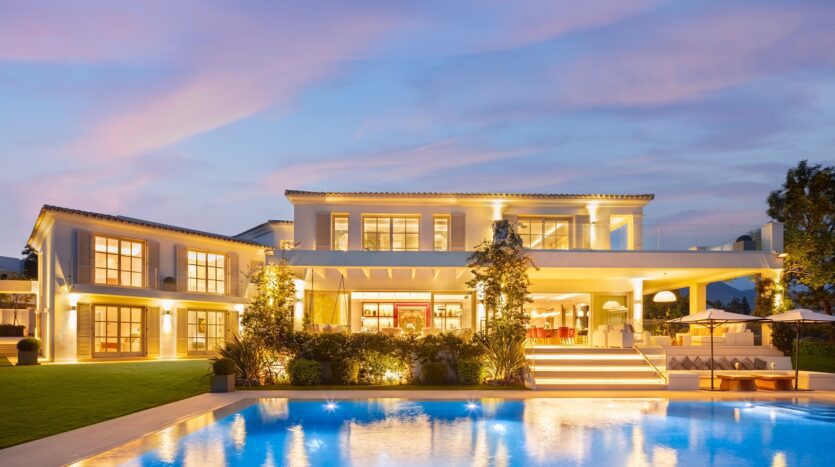 Aloha 40 es un oasis privado enclavado en la lujosa zona de Aloha, en el Valle del Golf de Marbella. Esta magnífica mansión se encuentra en una prestigiosa urbanización privada y goza de una envidiable ubicación en primera línea con vistas al campo de golf de Aloha. Su exterior atemporal y sus acabados interiores de primera calidad logran el equilibrio perfecto entre la elegancia clásica y la sofisticación moderna. La propiedad logra un equilibrio perfecto entre la elegancia clásica y la sofisticación moderna, con un exterior atemporal y acabados interiores de primera calidad. La paleta de colores utilizada para decorar el interior es suave y acogedora, evocando la atmósfera relajante que uno espera al volver a casa. La propiedad consta de una residencia principal con 5 dormitorios de generoso tamaño, incluyendo una lujosa suite principal con vestidor. Los dormitorios irradian individualidad con sus toques distintivos, pero su cohesión es testimonio de las ingeniosas decisiones de diseño. Hay una casa de invitados independiente de un dormitorio, perfecta para alojar al personal o a las visitas. El encanto de esta propiedad reside en sus encantadoras zonas exteriores, donde un exuberante jardín y amplias terrazas ofrecen el entorno ideal para disfrutar del clima perfecto de Marbella durante todo el año. El frondoso entorno de la casa principal está adornado con vegetación, que se integra a la perfección con las demás zonas verdes de la propiedad. Esta singular mansión presume de espectaculares vistas y lujosas comodidades, lo que la convierte en una joya inigualable en la codiciada zona de Marbella.